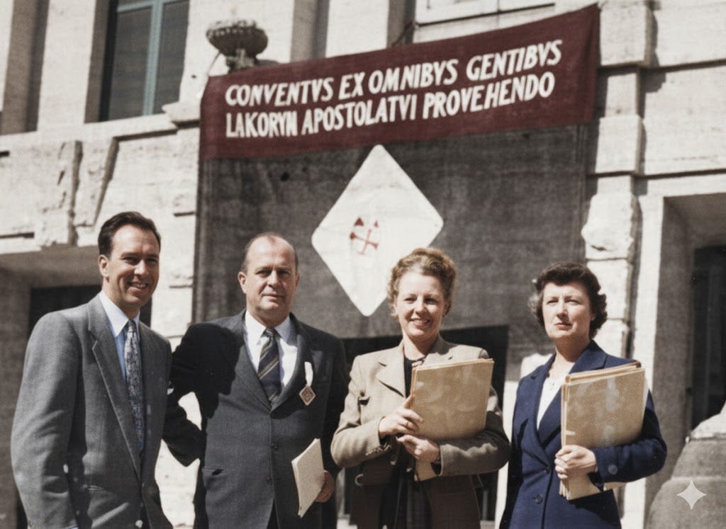 1951: First World Congress on Lay Apostolate, Rome, proposed by Pax Romana ICMICA leader, Vittorino Veronese, with Cardijn’s keynote address on “The world today and the lay apostolate,” later described by Brazilian Bishop Helder Camara as one of the most significant talks he ever heard.